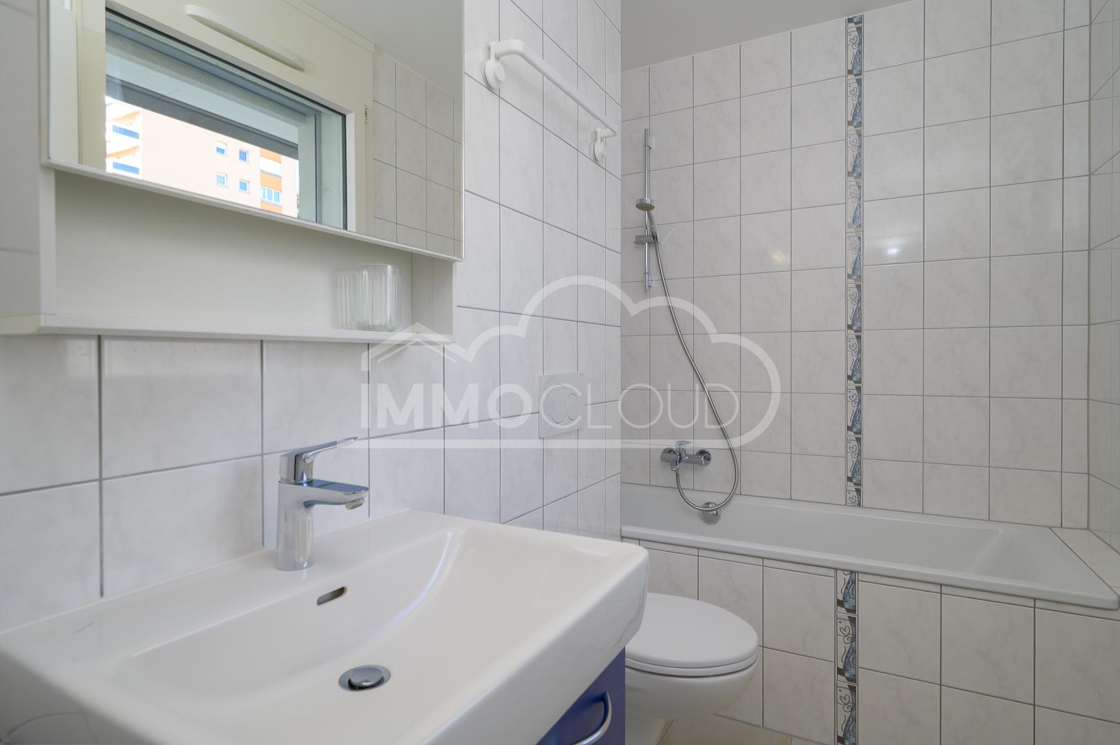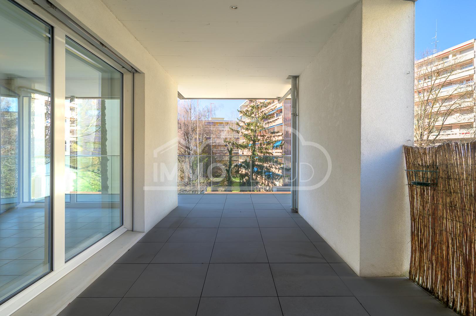 La construction récente garantit des standards contemporains en matière d’isolation thermique et phonique, assurant un confort optimal en toute saison. L’immeuble s’intègre harmonieusement dans son environnement verdoyant et bénéficie d’un cadre soigné et bien entretenu. La proximité immédiate des écoles, des transports, des commerces et des rives du lac ajoute une dimension pratique au charme indéniable du lieu.