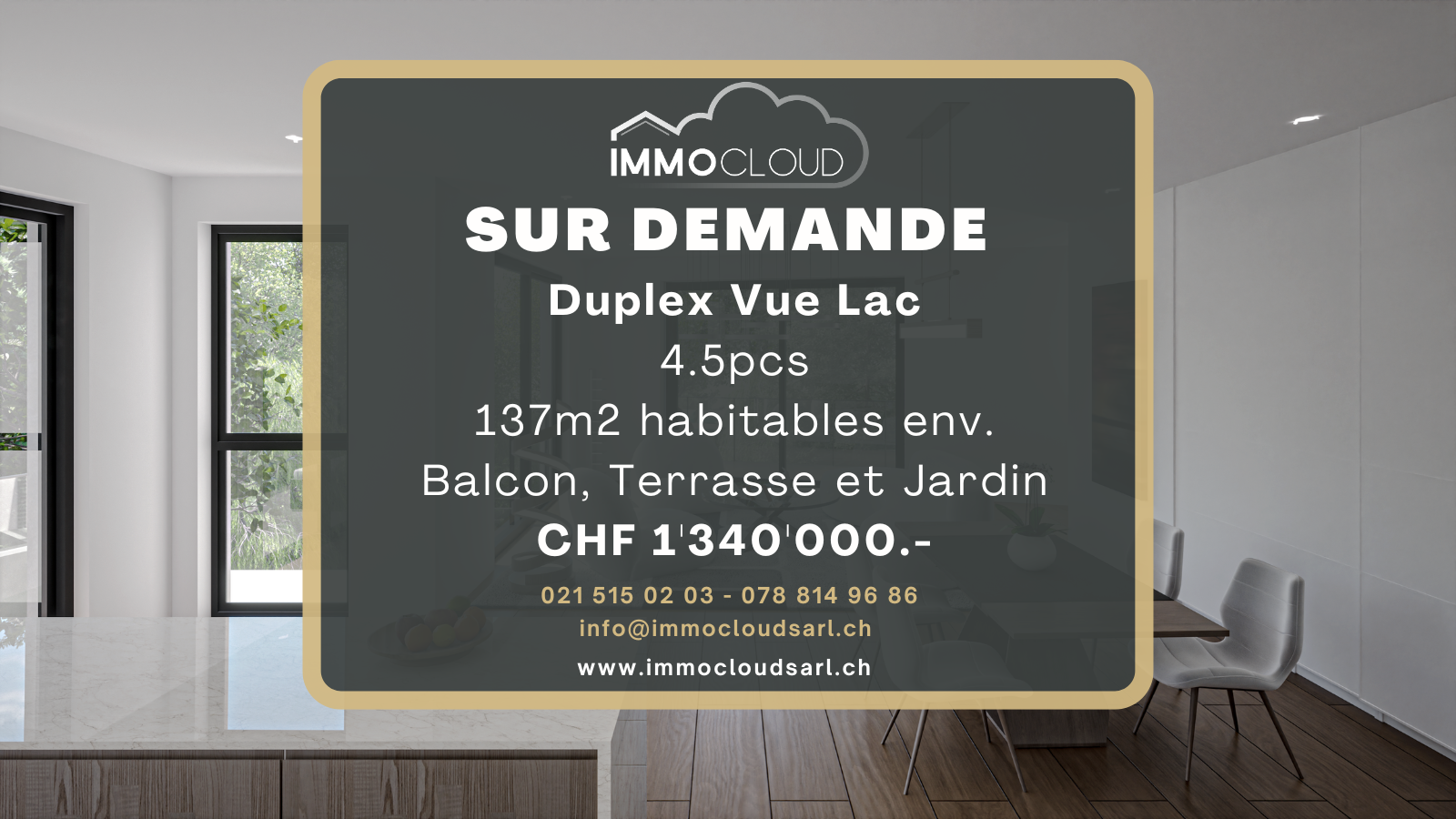 enez découvrir ce superbe appartement contemporain de 4.5 pièces de 137 m2 de surface habitable réparti sur trois niveaux, vous jouissez d'un balcon de 32 m2 et d'une terrasse-jardin de plus de 100 m2 ! L'exposition est idéale et permet de profiter des longues soirées estivales !