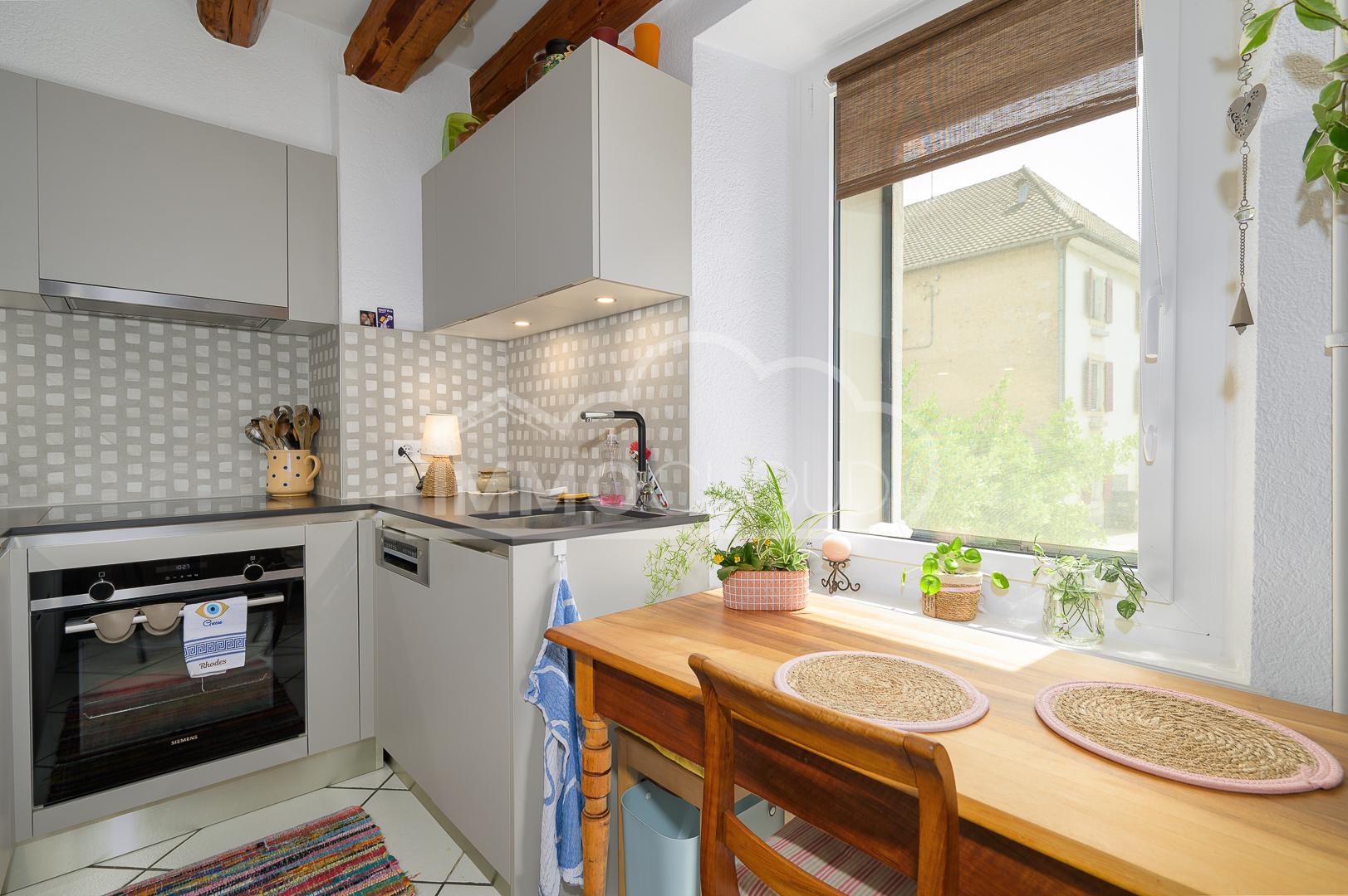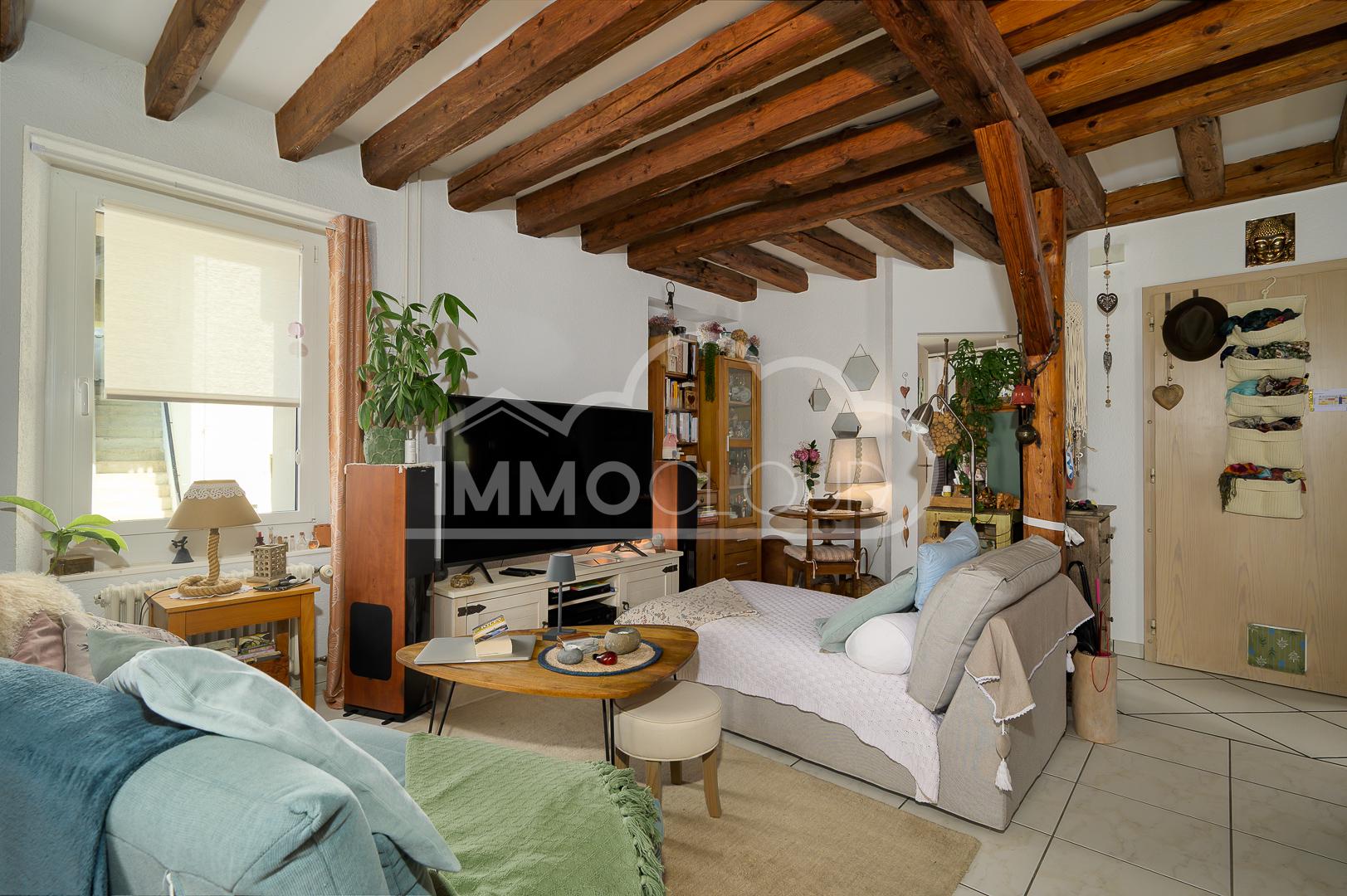 Au rez-supérieur, vous découvrirez un chaleureux appartement de 2.5 pièces, plein de cachet, mettant en valeur de belles poutres apparentes et bénéficiant d’un agréable jardin privatif. Actuellement loué pour un loyer brut de CHF 1’300.– par mois, ce logement présente un réel potentiel : il peut rester occupé par la locataire actuelle, ou être libéré au jour du transfert, une convention de sortie ayant déjà été signée.